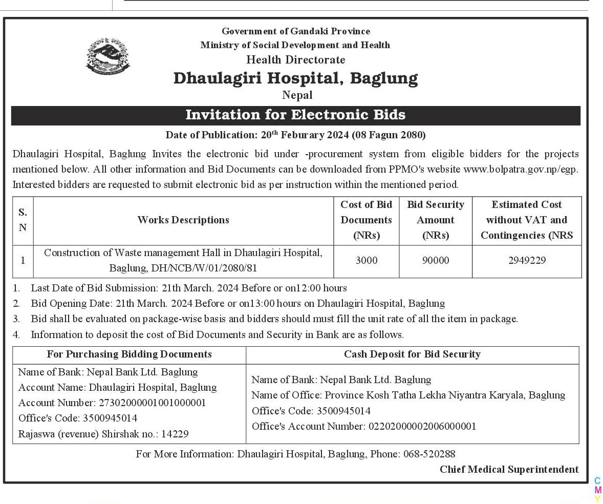 Download: फोहोरमैला व्यवस्थापन भवन निर्माण सम्वन्धी वोलपत्र