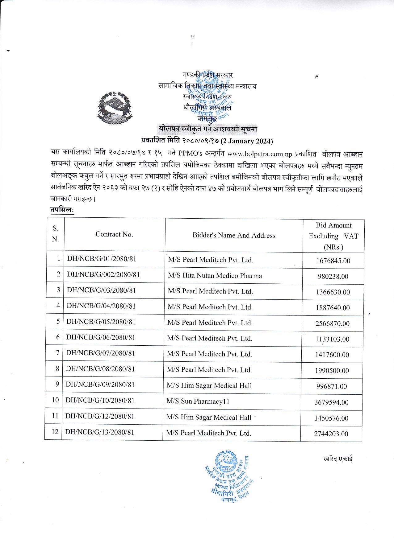 Download: बोलपत्र स्वीकृत गर्ने आशयको सूचना