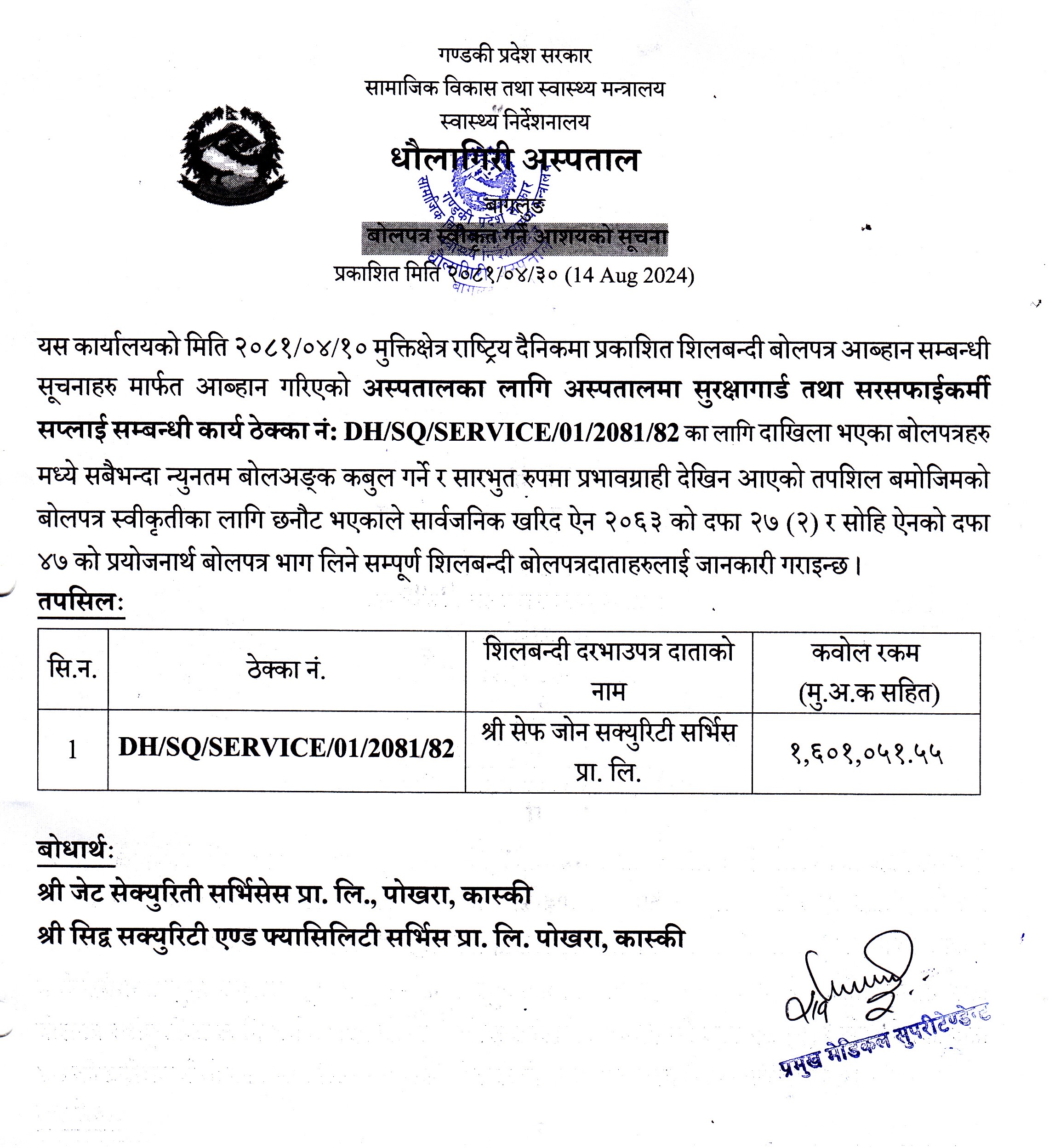 Download: वोलपत्र स्वीकृत गर्ने आशयको सूचना