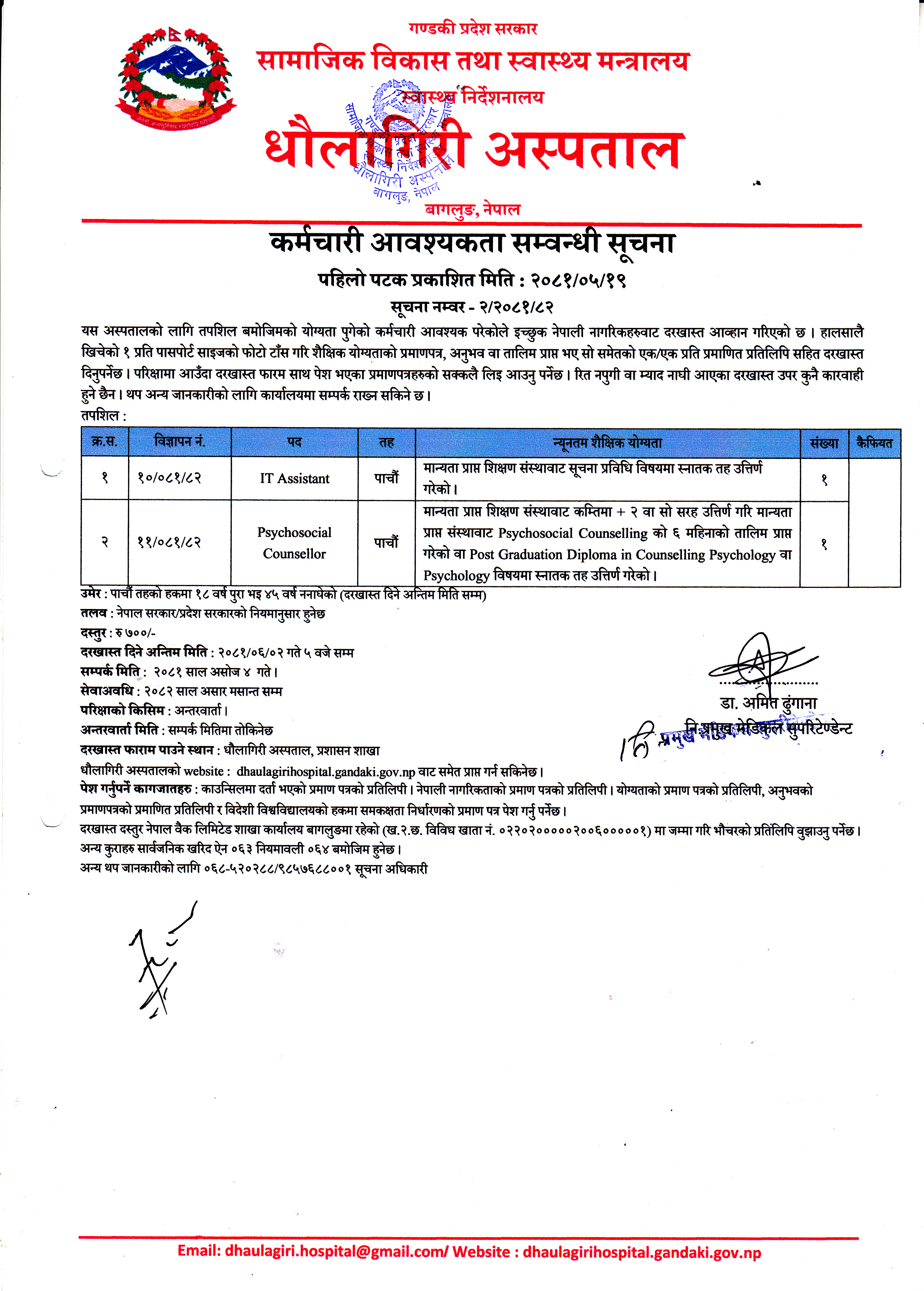 IT र Psychosocial Counsellor को विज्ञापन सम्वन्धी सूचना