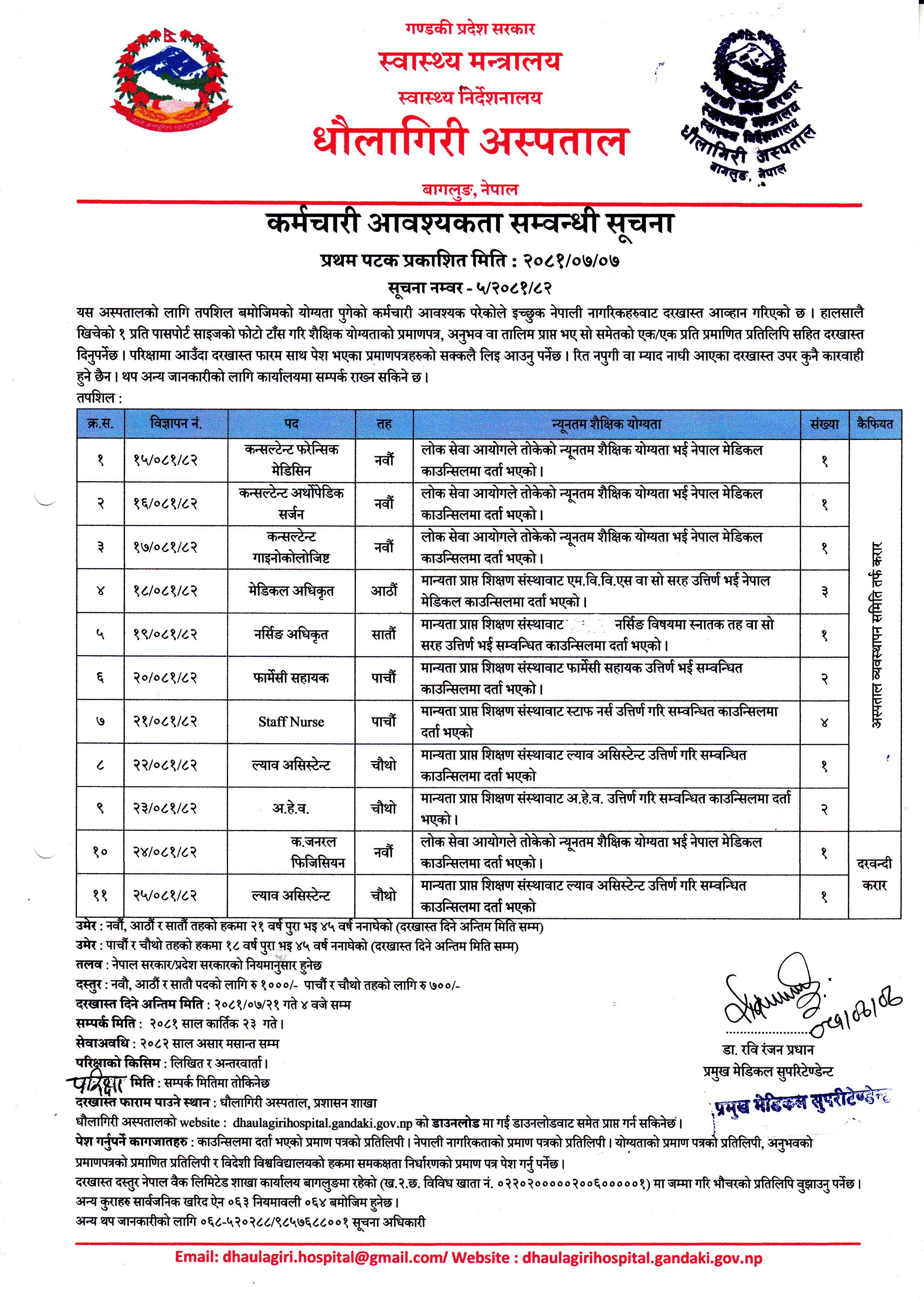 यस अस्पतालमा आवश्यक विभिन्न पदहरुको विज्ञापन