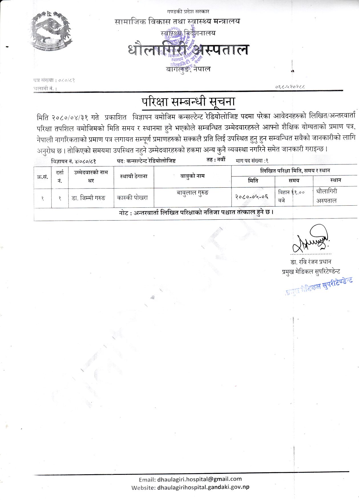 कन्सल्टेन्ट रेडियोलोजिष्ट पदको परिक्षा सम्वन्धी सूचना