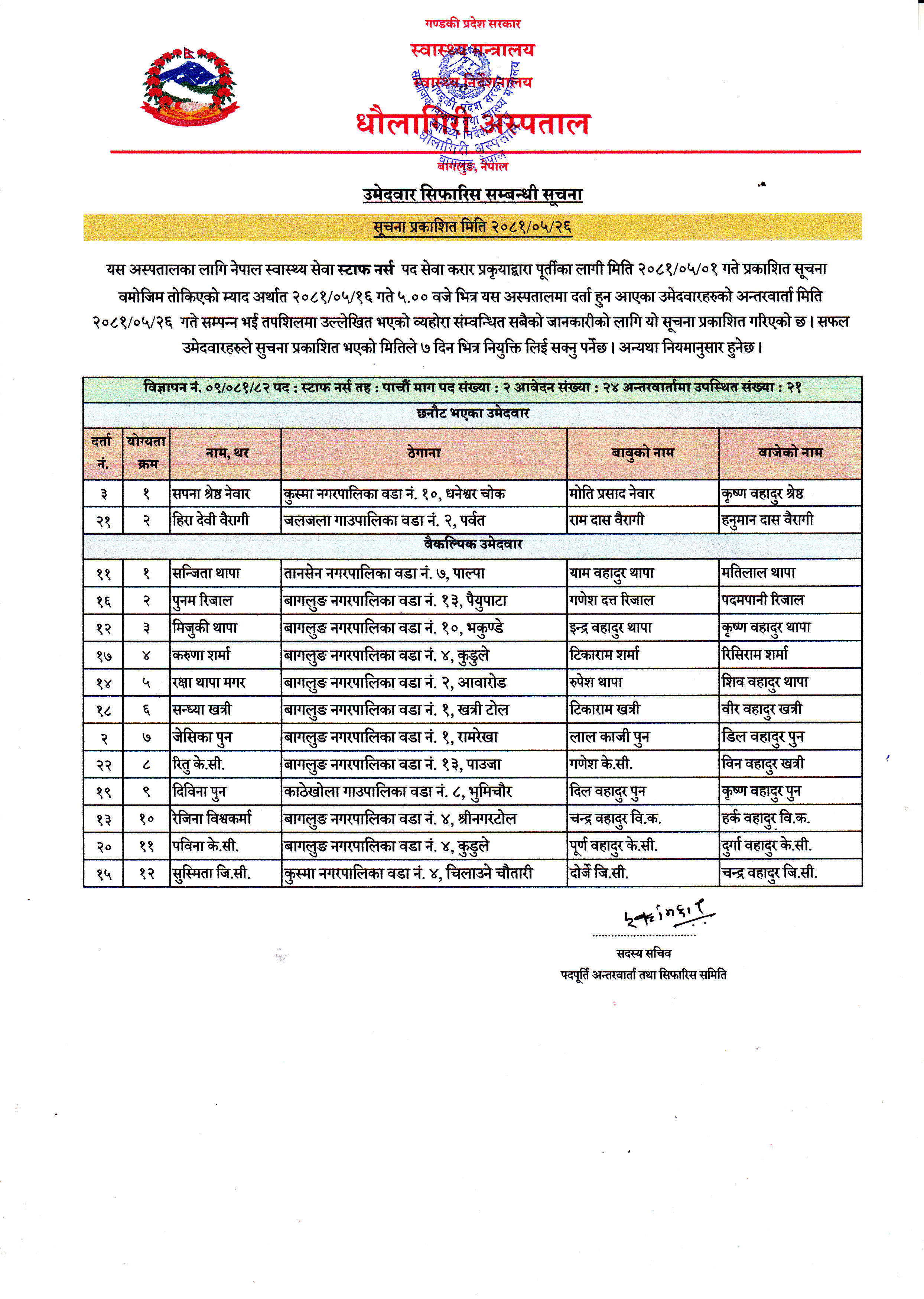 अन्तरवार्ताको सूचना प्रकाशन गरिएको (स्टाफ नर्स)