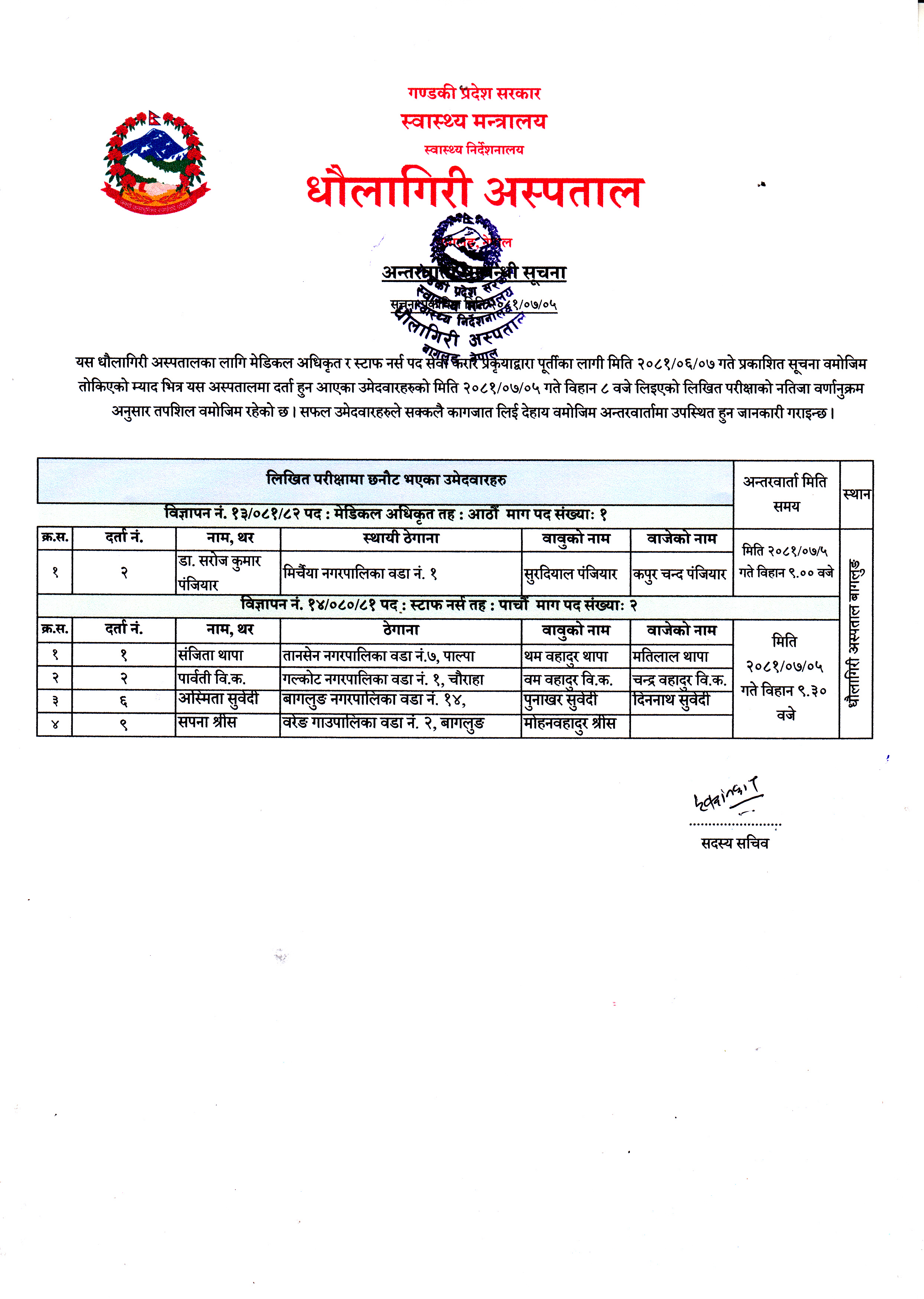 Download: लिखित परिक्षको नतिजा सार्वजनिक गरिएको