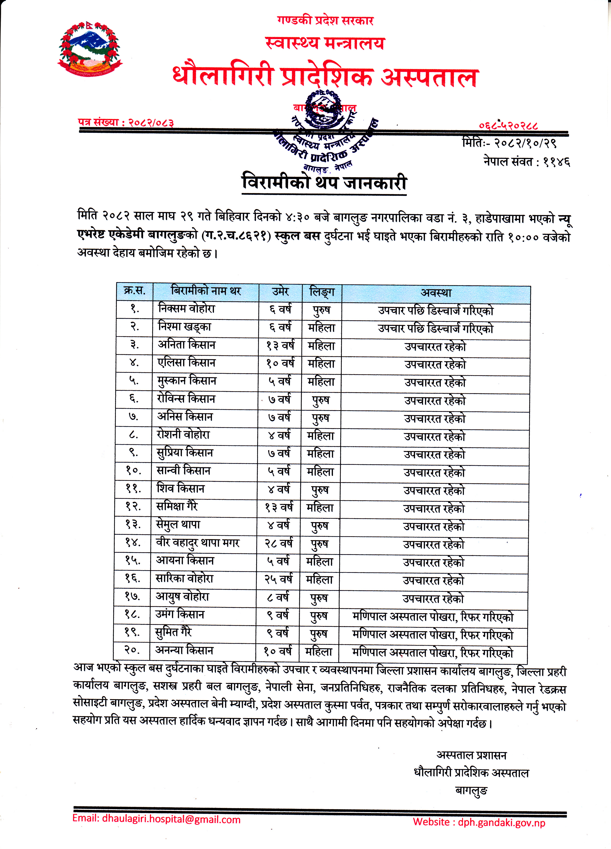 न्यू एभरेष्ट एकेडेमी स्कुल बस दुर्घटनाको थप जानकारी